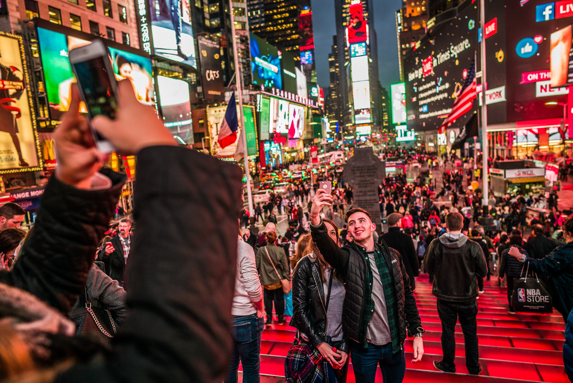 While my 'job description' means that I spend an inordinate amount of time looking for skylines of Manhattan when I visit, sometimes its more fun to watch others as they take in all that the 'The Big Apple' has to offer. The crowds are crazy at the Top of the Rock, The Empire State Building and Times Square, but if you aren't jockeying for skyline views you will have much more fun! Great to just go with the flow with a couple of my fast Summilux lenses and watch the humans. The action is amazing, the lighting superb, and one never knows who one might see, after all it's New York, the city that never sleeps!